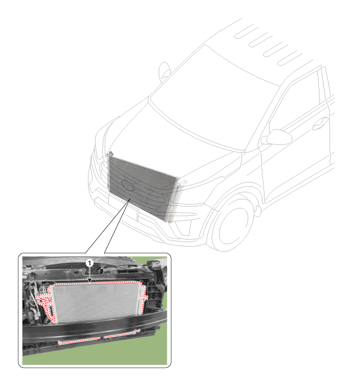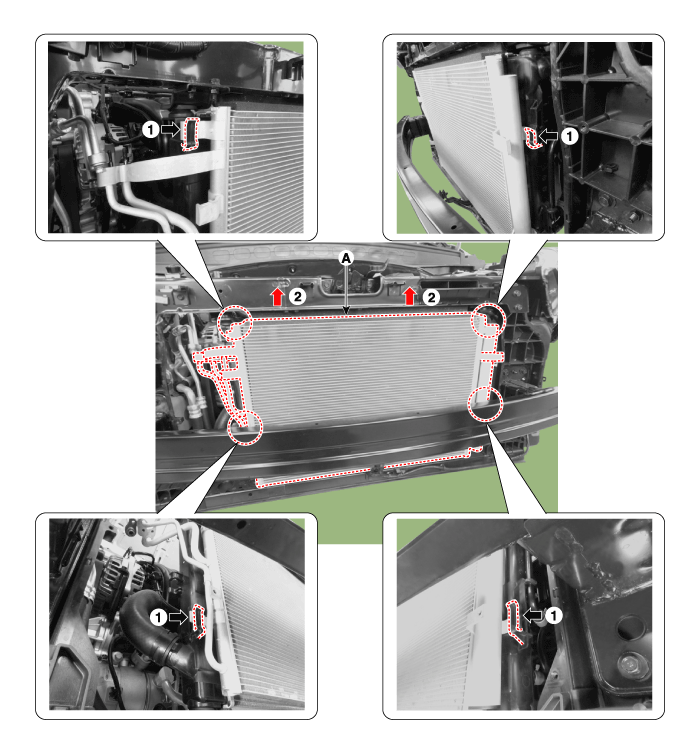 Remove the condenser (A) from radiator.